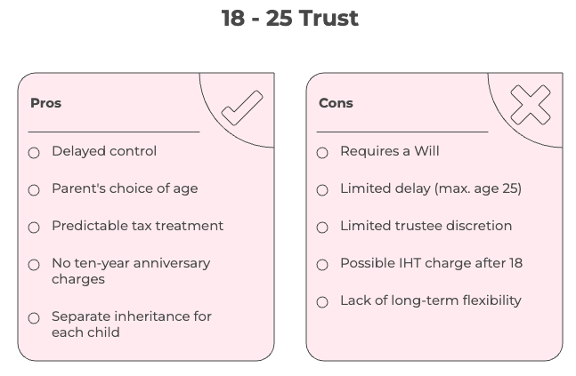 An Age 18–25 Trust exists specifically to delay inheritance beyond age 18.